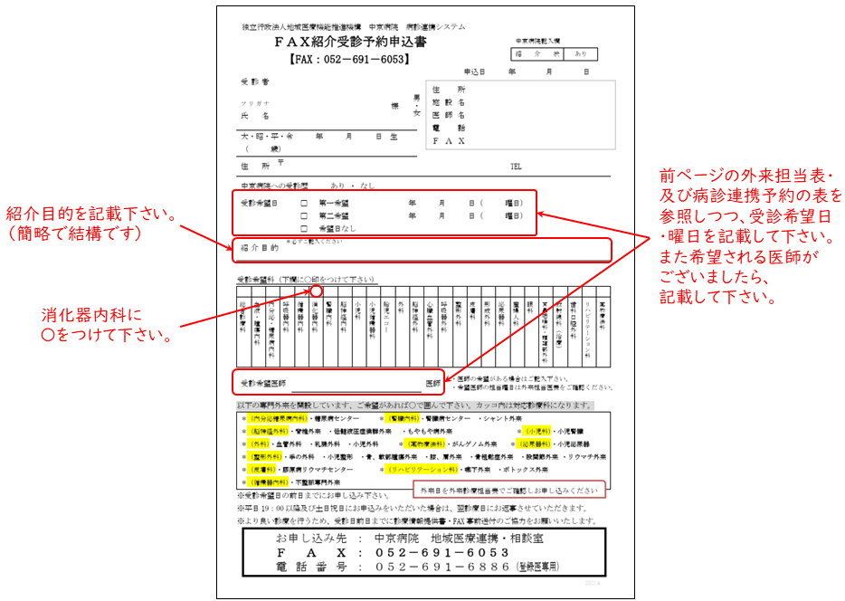 ■2. FAXによる内視鏡検査予約