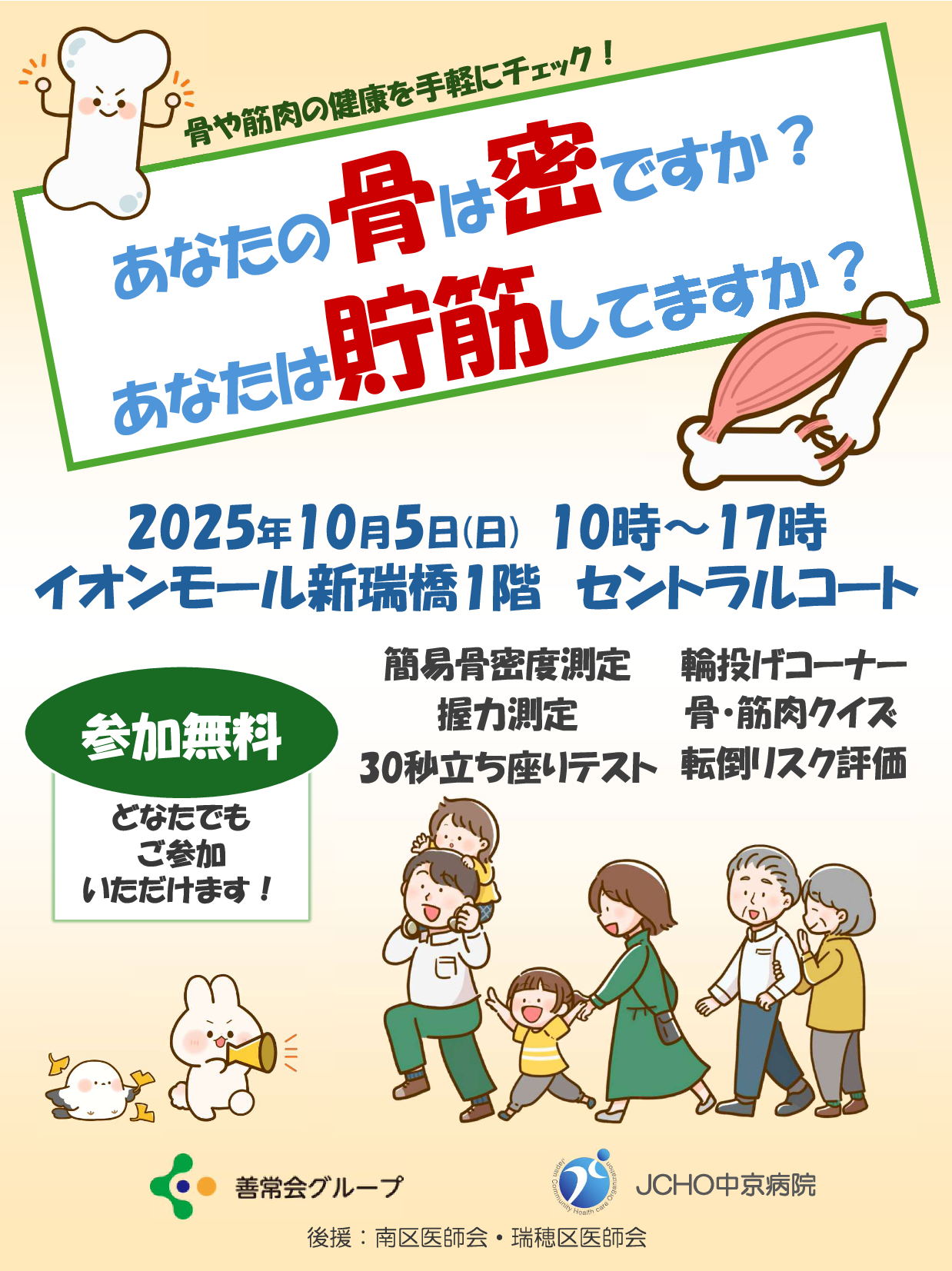 地域住民の方を対象に、善常会リハビリテーション病院と中京病院共同開催のイベントを開催します。参加費、ご予約は不要です。